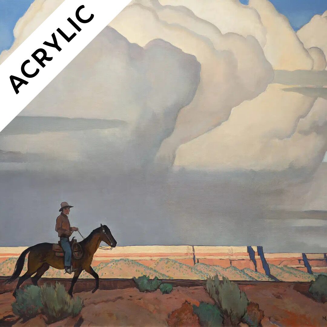 In this month’s acrylic painting class, we will be painting the iconic Maynard Dixon painting, “Desert Journey.” With step-by-step instruction from our Teaching Artist, each participant will learn acrylic painting skills like sketching, color mixing, & painting from reference, and will end the class with a gorgeous western landscape of their own. This painting is suitable for all levels of acrylic artist and will be done on 16×20″ canvases, ready to hang at home!